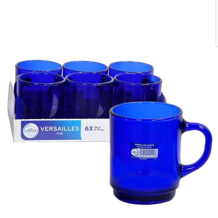 لیوان دورالکس فرانسه دسته دار آبی کاربنی ۲۶cl