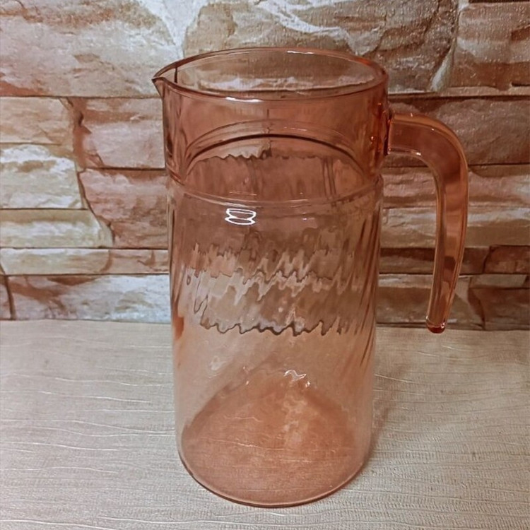 پارچ صورتی طرح دار فرانسوی بسیار زیبا و کمیاب حک فرانسه سالم و تمیز ارتفاع ۲۱سانت