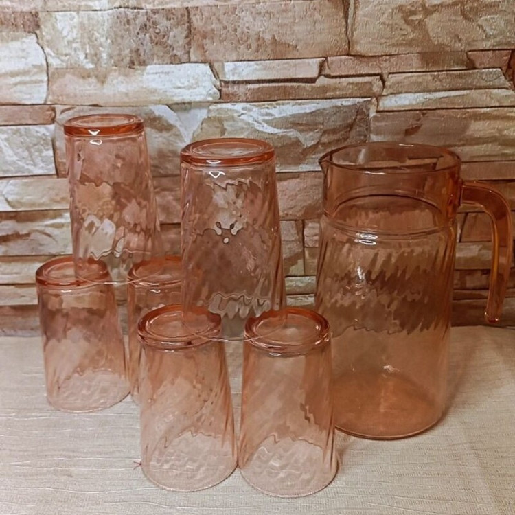 پارچ ولیوان آرکروک فرانسه رنگ صورتی پیچ شربتخوری