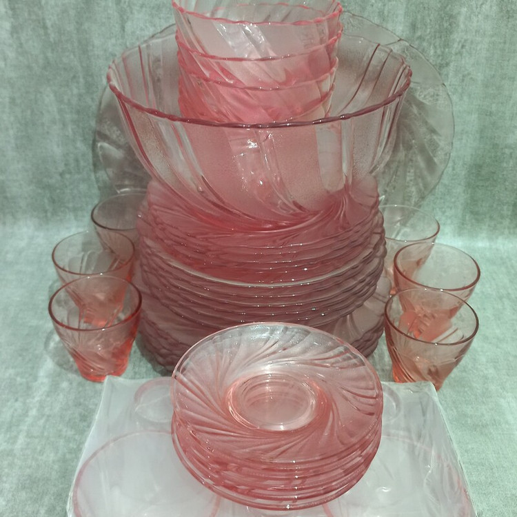 سرویس غذاخوری دورالکس فرانسه طرح صورتی پیچ 44پارچه