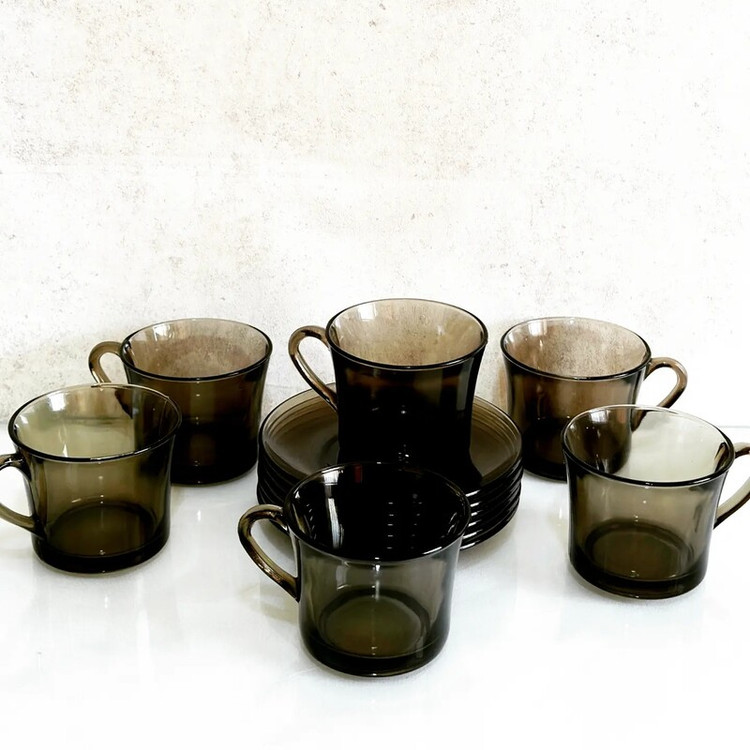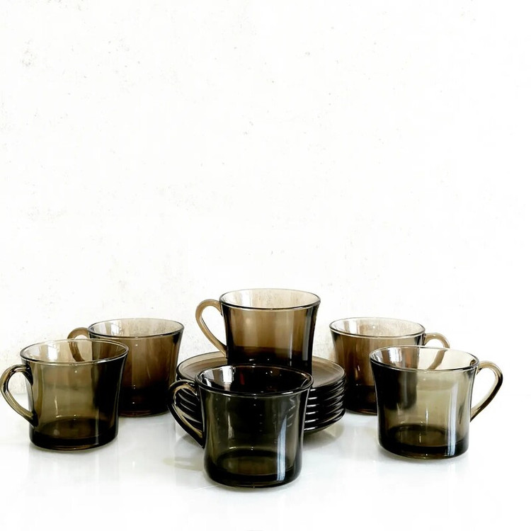 چایخوری دورالکس فرانسه دودی ۶فنجان و ۶ زیر فنجان
