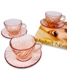 فنجان و زیر آرکروک فرانسه طرح صورتی پیچ