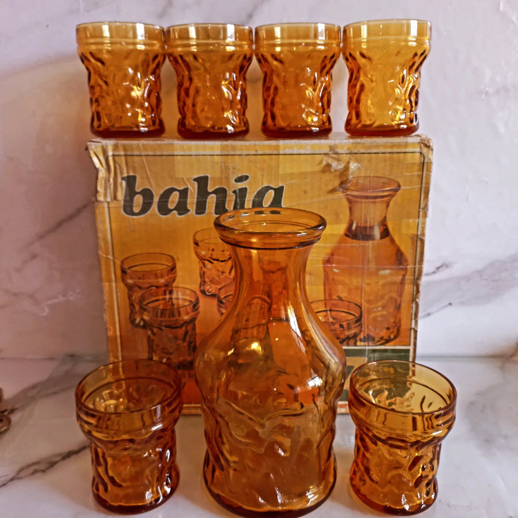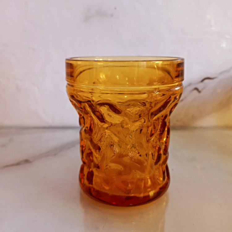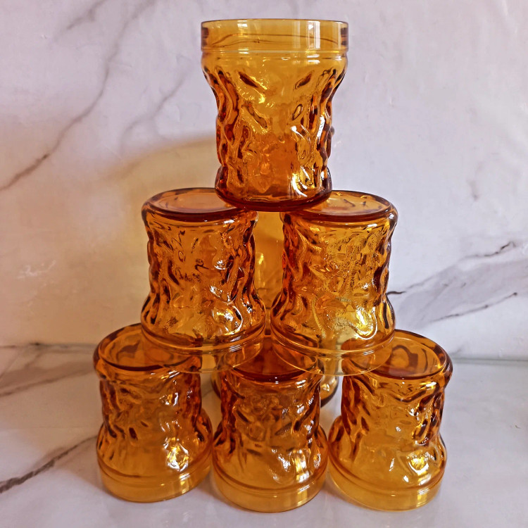 تنگ و لیوان کریستال ایتالیا رنگ عسلی تراش دار