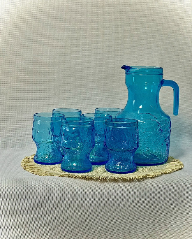 ♦️ پارچ و لیوان قدیمی ایتالیا آبی کمیاب♦️