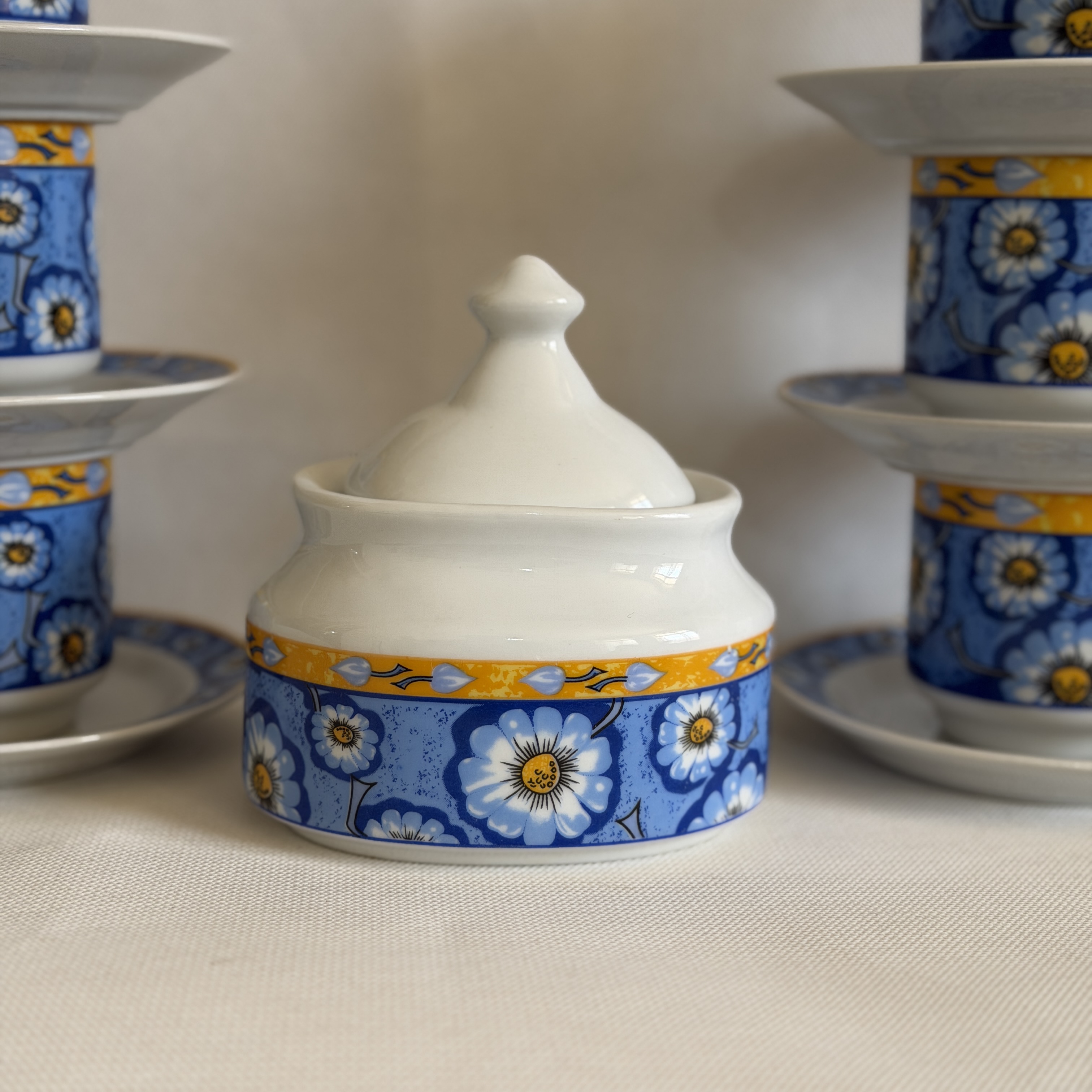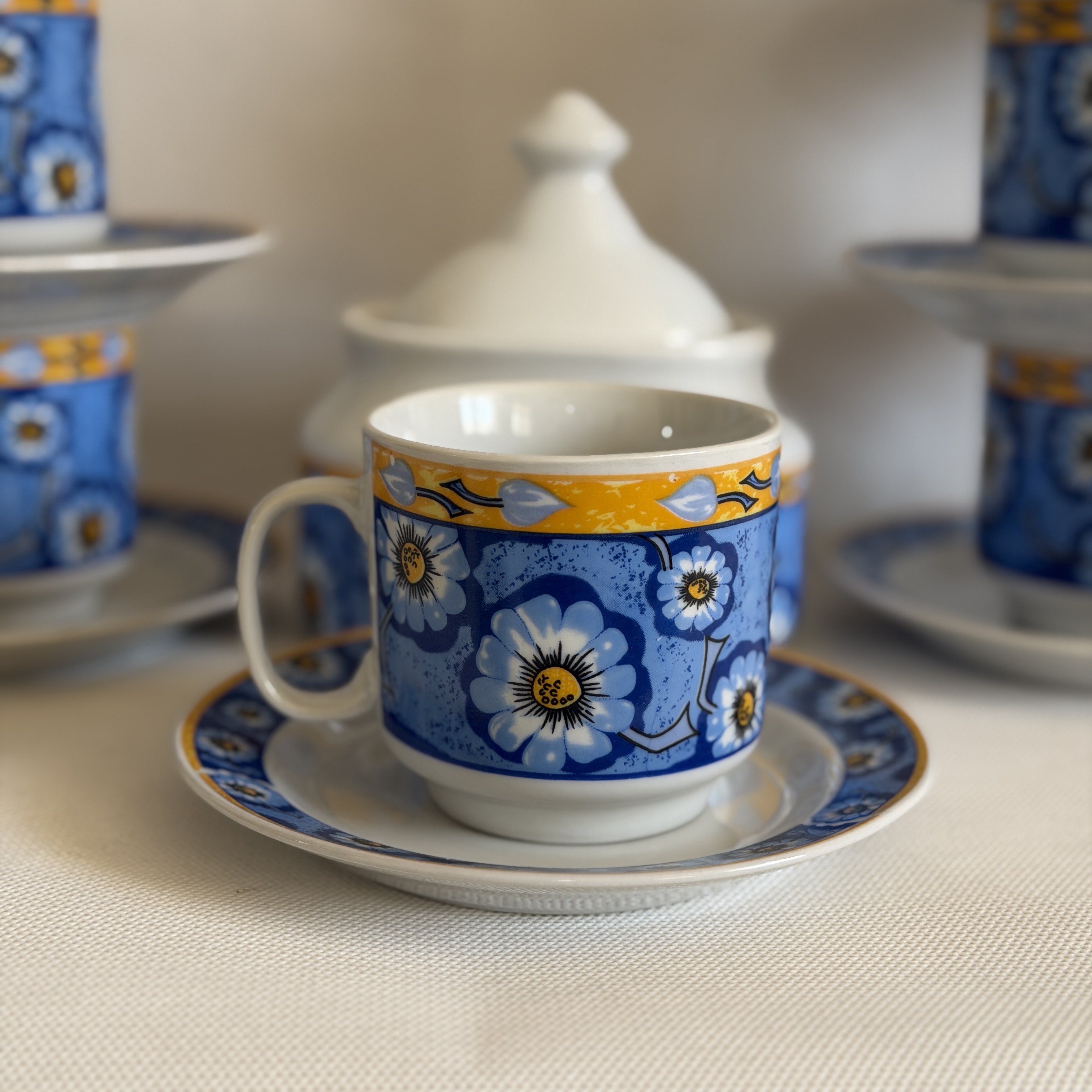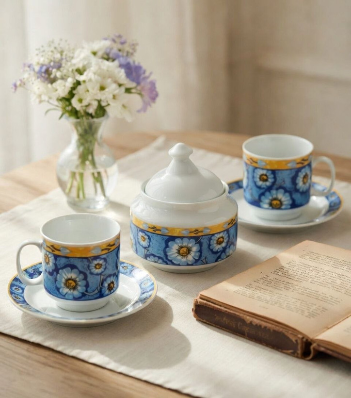 چایخوری قدیمی طرح گل بابونه با قندان